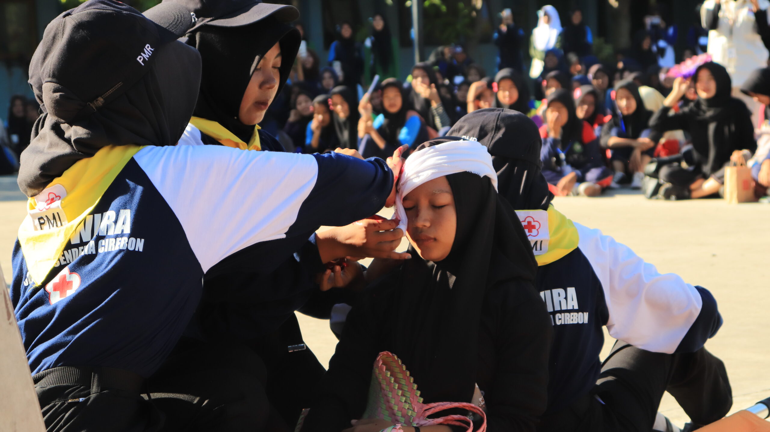 Di PMR, anggota tidak hanya dibekali dengan materi teoritis, tetapi juga dilatih secara langsung dalam penguasaan Pertolongan Pertama Pada Kecelakaan (P3K), perawatan keluarga, sanitasi, hingga mitigasi bencana. Mereka adalah garda terdepan saat terjadi keadaan darurat medis di lingkungan sekolah. Melalui PMR, siswa belajar untuk tetap tenang di bawah tekanan, mengambil tindakan medis dasar yang tepat sasaran, serta memupuk rasa persaudaraan tanpa membedakan latar belakang. Mari asah kepekaan sosialmu dan jadilah pahlawan kemanusiaan di lingkungan sekitarmu!”